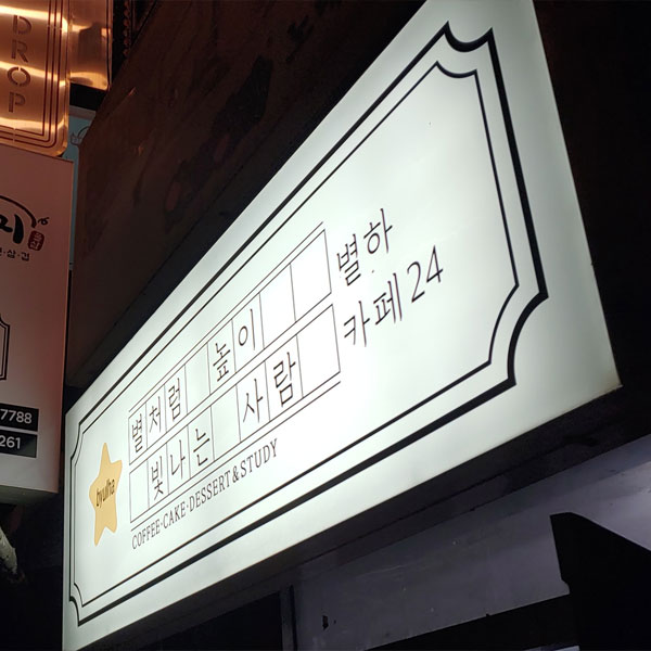 플렉스간판은 건물 외벽에서 밖으로 튀어나오게 설치하는 간판으로, 보행자와 차량 양방향에서 시인성이 뛰어난 것이 가장 큰 장점입니다.