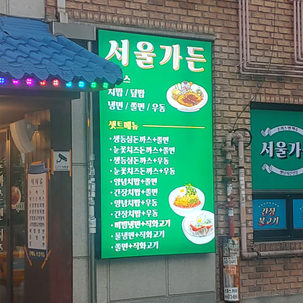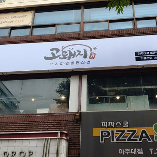 플렉스간판은 건물 외벽에서 밖으로 튀어나오게 설치하는 간판으로, 보행자와 차량 양방향에서 시인성이 뛰어난 것이 가장 큰 장점입니다.